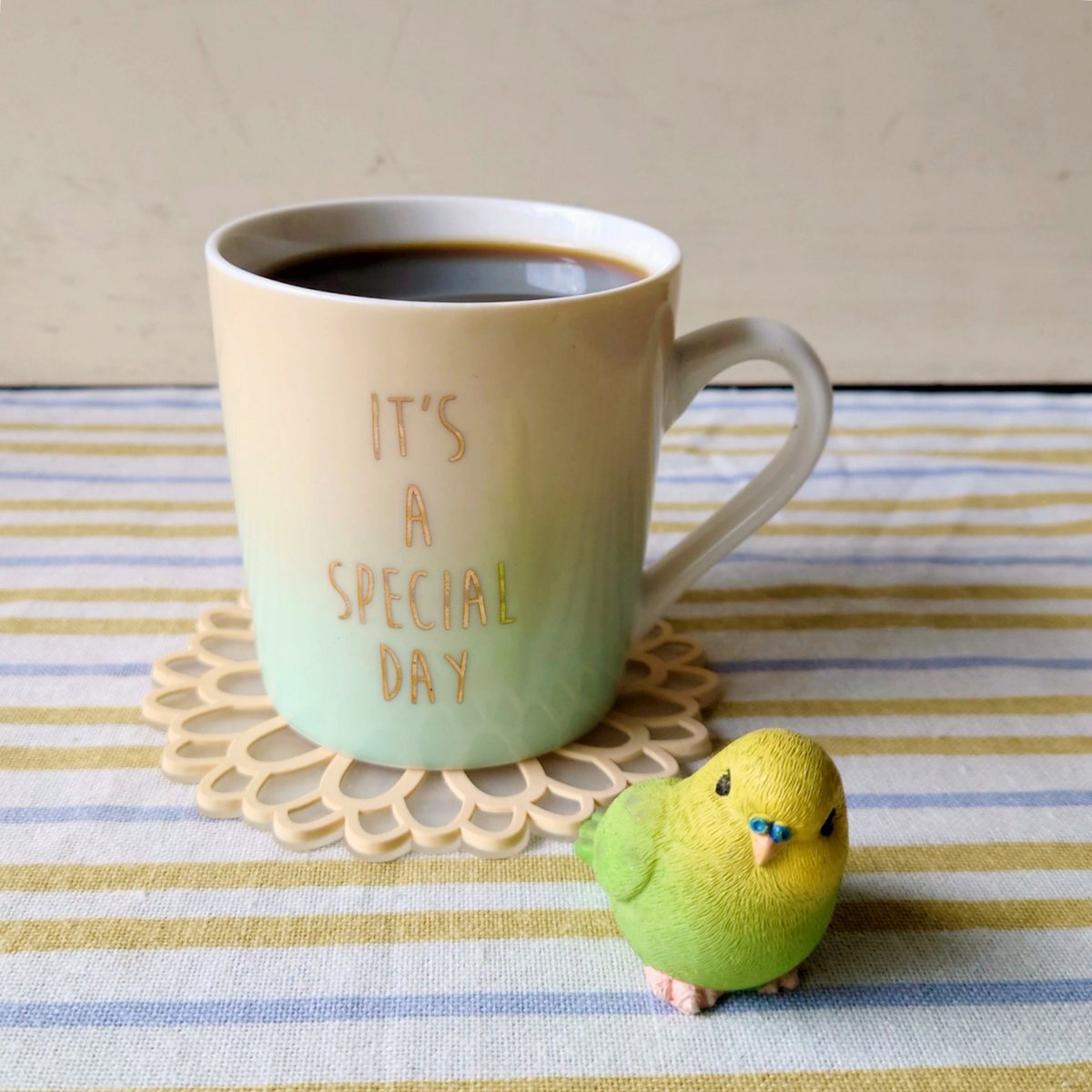 おはようございます 昨日はケーキをたんまり食べ、100円ショップで5桁近くの買い物w やっちまったw またカップをお迎え 中が青だと色味が悪くなりそうですが、ツートン可愛い 今日は、深煎りにしてもらったマンデリン 寒い雨の朝には濃いめの一杯が嬉しいです #コーヒー日記 #コーヒーのある暮らし pic.x.com/ltqVzgS9WL