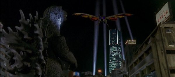 #ゴジラモスラキングギドラ大怪獣総攻撃 戦いの舞台は横浜へ。 歴代で顔が怖いゴジラと、歴代で顔が怖いモスラの戦い。 モスラの毒針は衝撃的でした。 pic.x.com/jq3WYUBw0Z