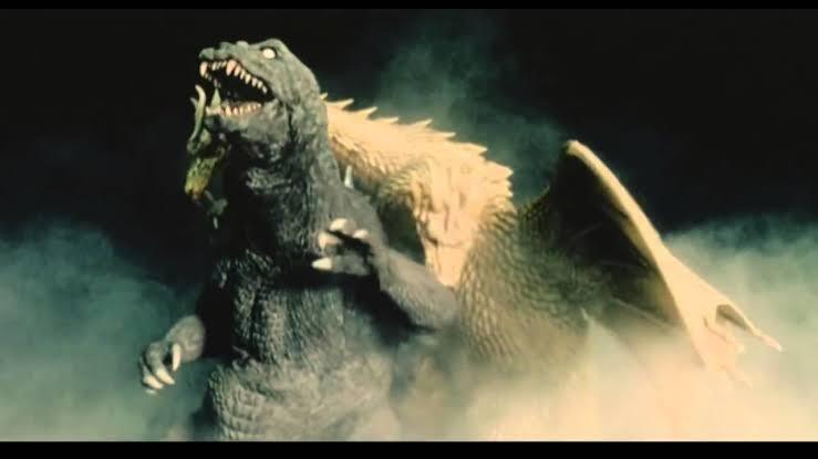 #ゴジラモスラキングギドラ大怪獣総攻撃 ポスターだと黒目があるように見えなくもないGMKゴジラ。 pic.x.com/zwD8Ax9H85