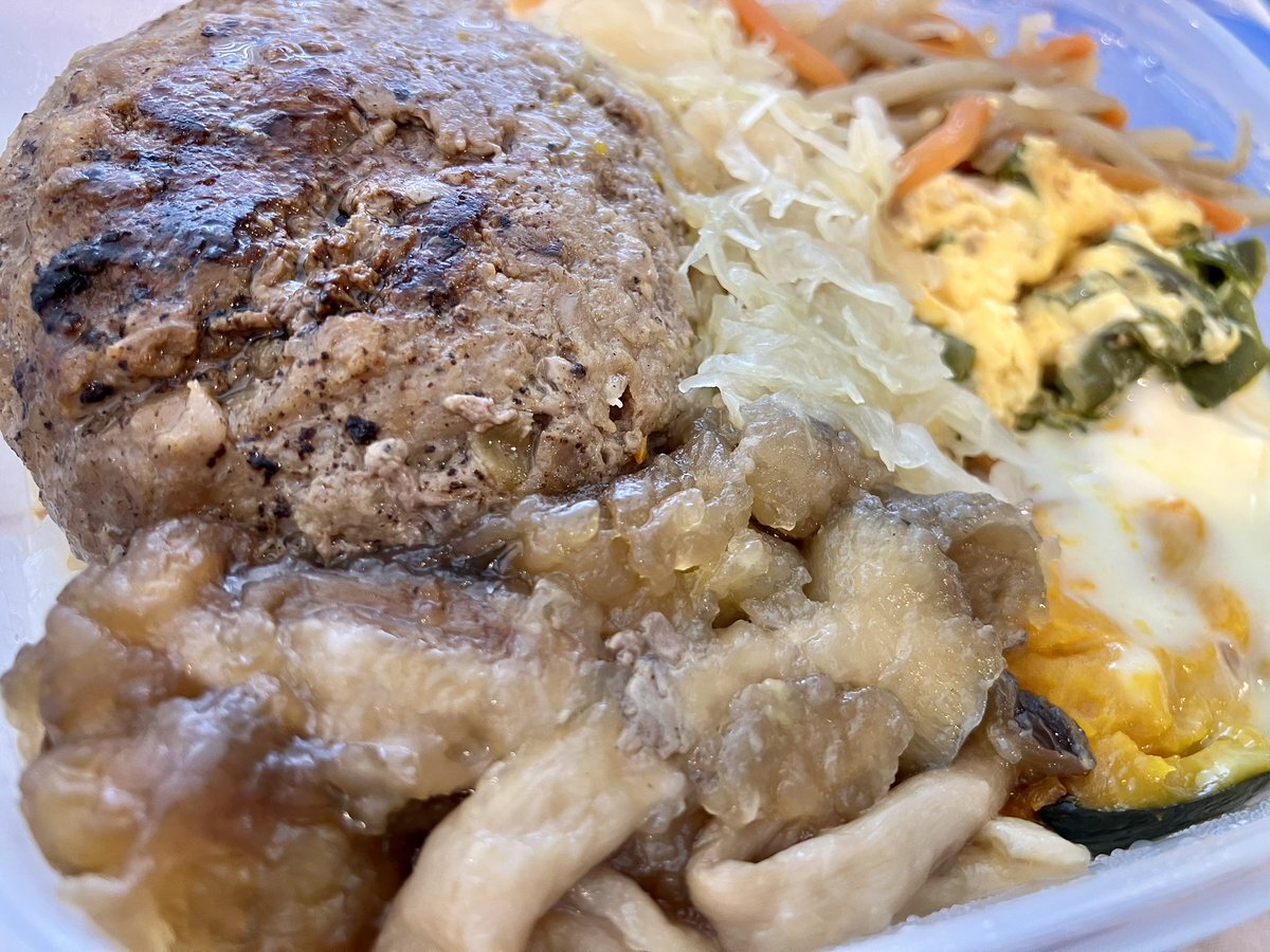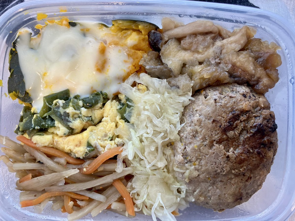 昼休み〜٩(๑>∀<๑)۶ 今日も元気だ、弁当がうまい😋🍴💕 #茶色い弁当女子 #だいぶ前にイベントで勝って際にもらった景品の飛騨牛のハンバーグ #ゴボウと人参のきんぴら #カボチャにチーズのせたやつ #千切りキャベツの炒め物 #ワカメの卵とじ #ナスとシメジの揚げ焼き味ぽんかけ #ご飯 pic.x.com/aRWa7d7imD