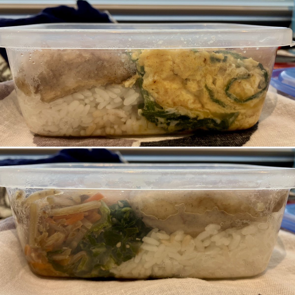 昼休み〜٩(๑>∀<๑)۶ 今日も元気だ、弁当がうまい😋🍴💕 #茶色い弁当女子 #豚肉と玉ねぎの焼肉のタレ炒め #ほうれん草と人参とエノキの炒め物 #ゴボウと人参のきんぴら #ネギと豆腐のオムレツ #ご飯150g pic.x.com/bZ71fqtQ9N