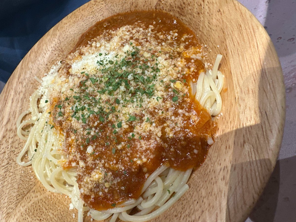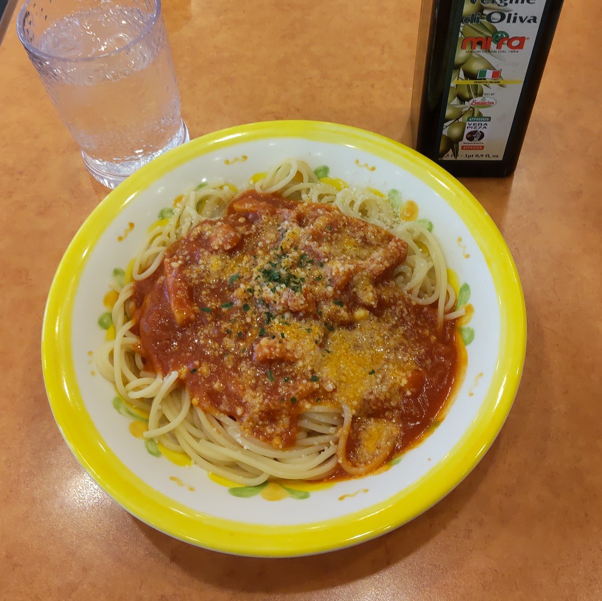 #お昼ごはん 、 #サイゼリア にて、 「 #ミートソースボロニア風 」 そのままでも美味しいのに、オリーブオイルをかけたら、 美味しさ倍増になった😳 これは、魔貫光殺砲ならぬ、 ご馳走さまレインボー🌈だな💕 pic.x.com/gTVEmJqrMj