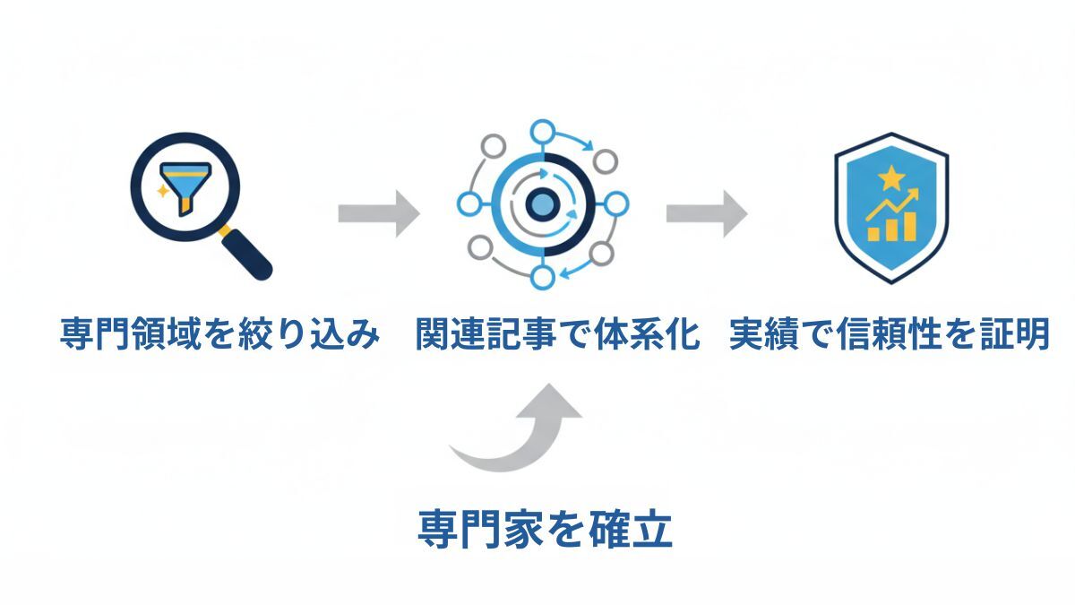 サイト全体が専門家として認識される構造づくりの3ステップ🎯 ①専門領域の明確化 ②トピッククラスター設計 ③権威性の証明✨ Googleと読者から信頼される存在に🚀 #トピッククラスター #ブログ初心者 #サイト設計 #記事構成 pic.x.com/gCo1vsLVFs