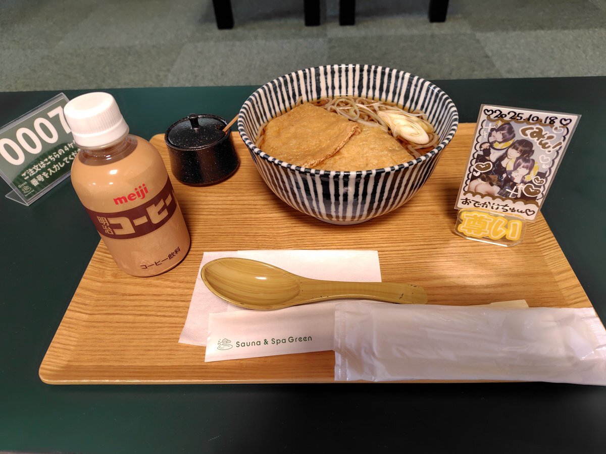 りんちゃん早速使ってみるよー! スパグリのきつねそばです*.+゚ #スパグリ #サウナアンドスパグリーン #温泉サウナ #須賀川市 #greenhillpark #凛ちゃんにガオガオちゅー pic.x.com/imA9gsk56D