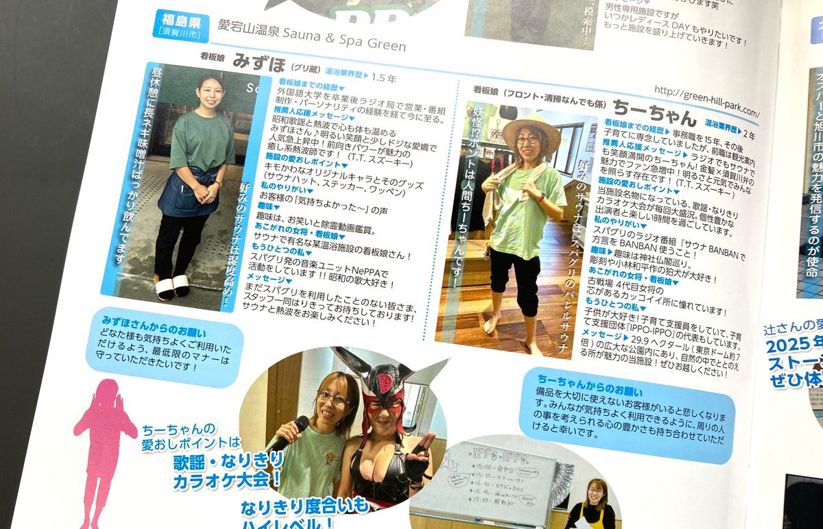 本日10/26発売‼ 🔥月間サウナに #サウナアンドスパグリーン 推し看板娘が載りました~‼ スパグリスタッフで サウナBANBANパーソナリティ♨ちーちゃん✨ スタッフ兼熱波師で 音楽ユニットNePPAのメンバー♨みずほ ✨ 2人の記事✨是非手に取ってみてくださいね~😆 #サウナイキタイ #サ活 #須賀川市 pic.x.com/ZtS3N6k4UR