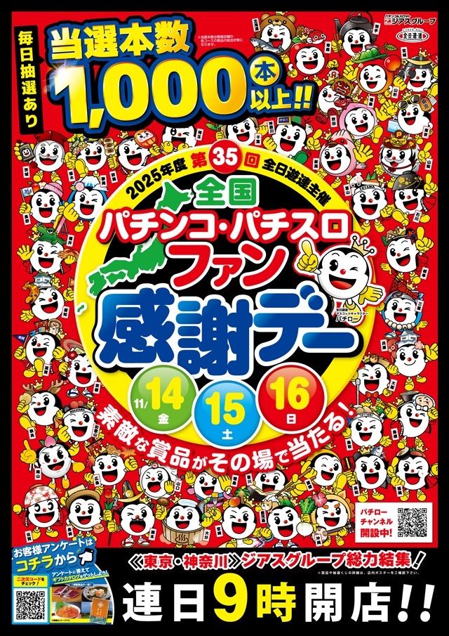 ✨2025年度第35回✨ 🎊全国パチンコ・パチスロ🎊 🎉ファン感謝デー🎉 👀11月14・15・16日👀 本日から3日間開催ですっ💨 サガンでは… 1⃣ファン感くじ配布🔥 2⃣木金金木 3⃣サガンの19時はガチ 盛リダクサンダァーッ‼️ #サガン新横浜 #相互フォロー募集中 #フォロバ100変な垢以外 pic.x.com/ckhB2TMyBN