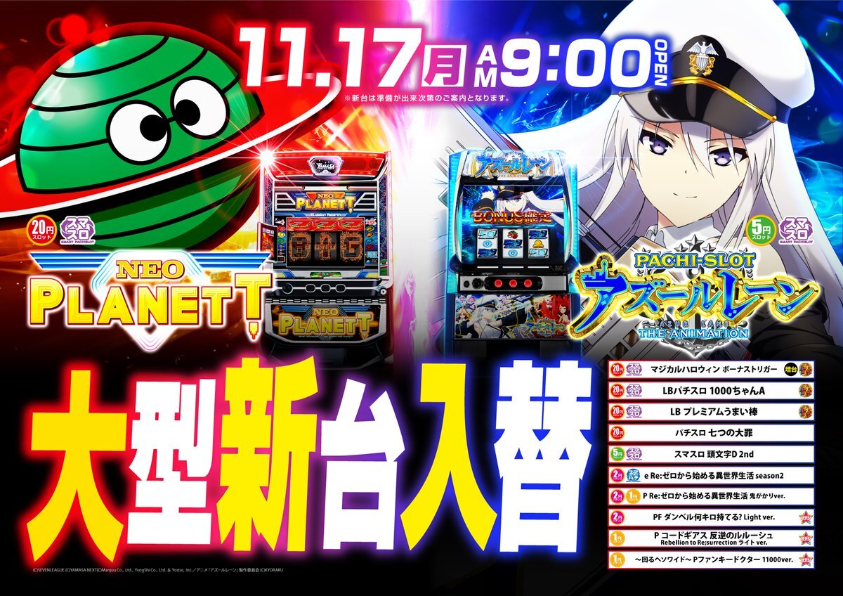 朝から打てるので 争奪戦ですね😉 特に 5スロで #アズールレーン が打てるんで ぜひぜひお試しあれ🎵 あとは 20スロに 最新機種の #ネオプラネット がっ‼️ 他パチンコにもいっぱい入ったので ぜひ打ってみて欲しいな💕 #サガン新横浜 #相互フォロー募集中 #フォロバ100変な垢以外 pic.x.com/hmeIm3VLpC