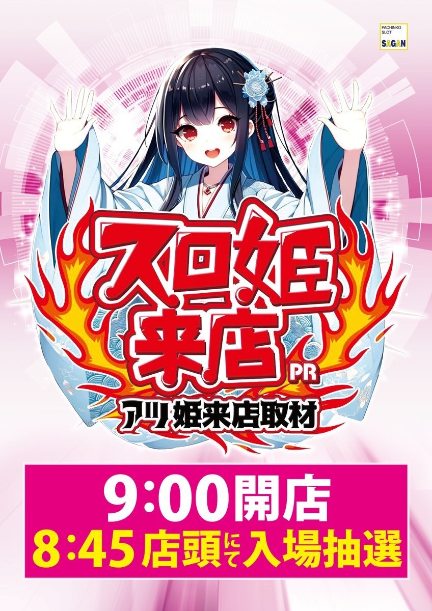 おはようございます🌞 本日は~❓ #ファン感謝デー 2日目 & #スロ姫 👸来店 #佐伯みゆ 様💕 @miyu_saeki 🎊9:00開店🎊 ⏰8:45から入場抽選です💨 #サガン新横浜 pic.x.com/Ec64Mmvx6e