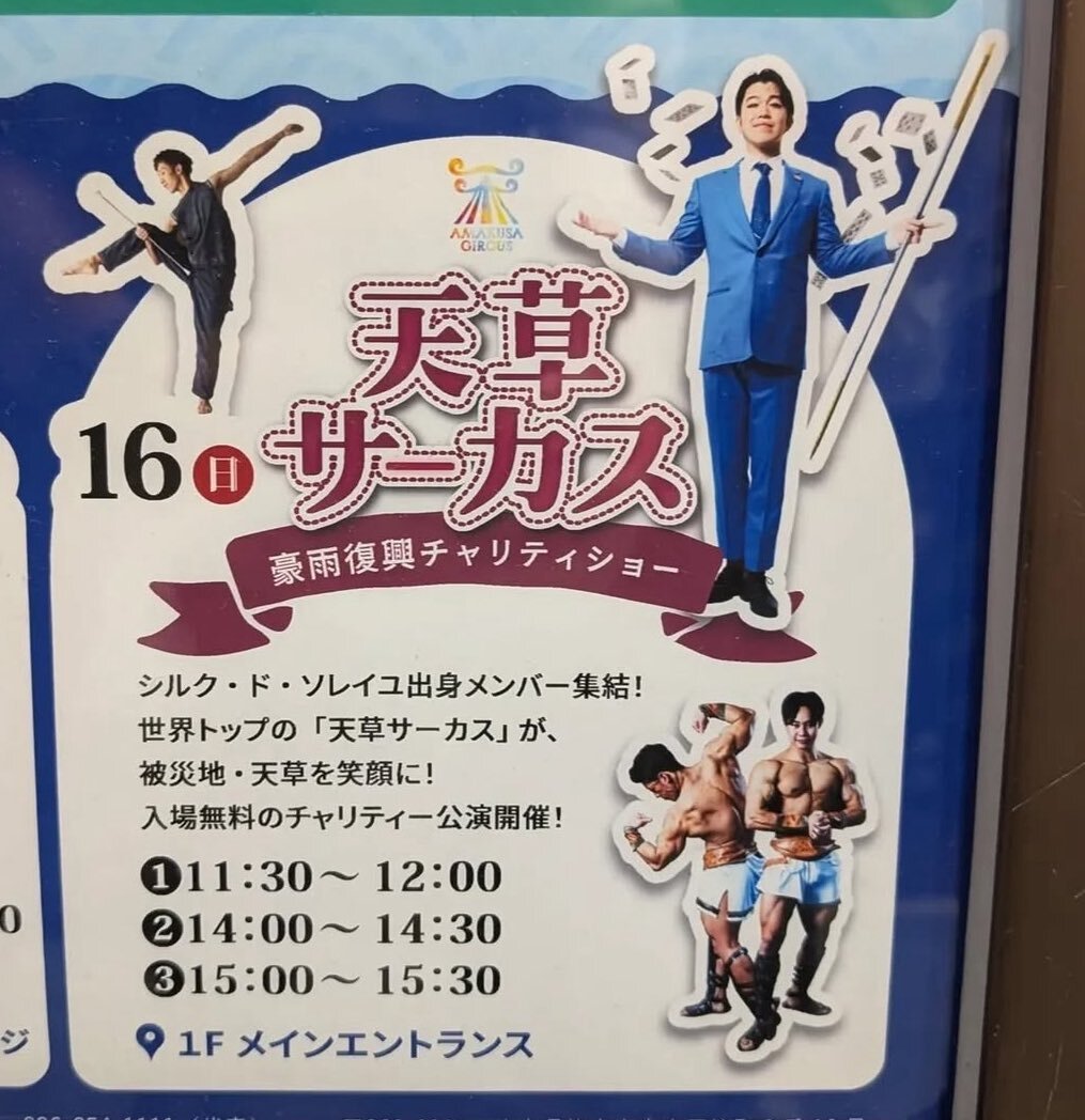 --出演情報-- 週末はサクラマチでサーカスやります🎪 なんと入場無料! 誰もが楽しめるショーになってます✨ ぜひこの機会に! #天草サーカス 豪雨復興チャリティショー in #サクラマチクマモト <開催日時> 11/16 (日) 11:30~・14:00~・15:00~(計3回) <開催場所>1F メインエントランス pic.x.com/koxOH4vmxi