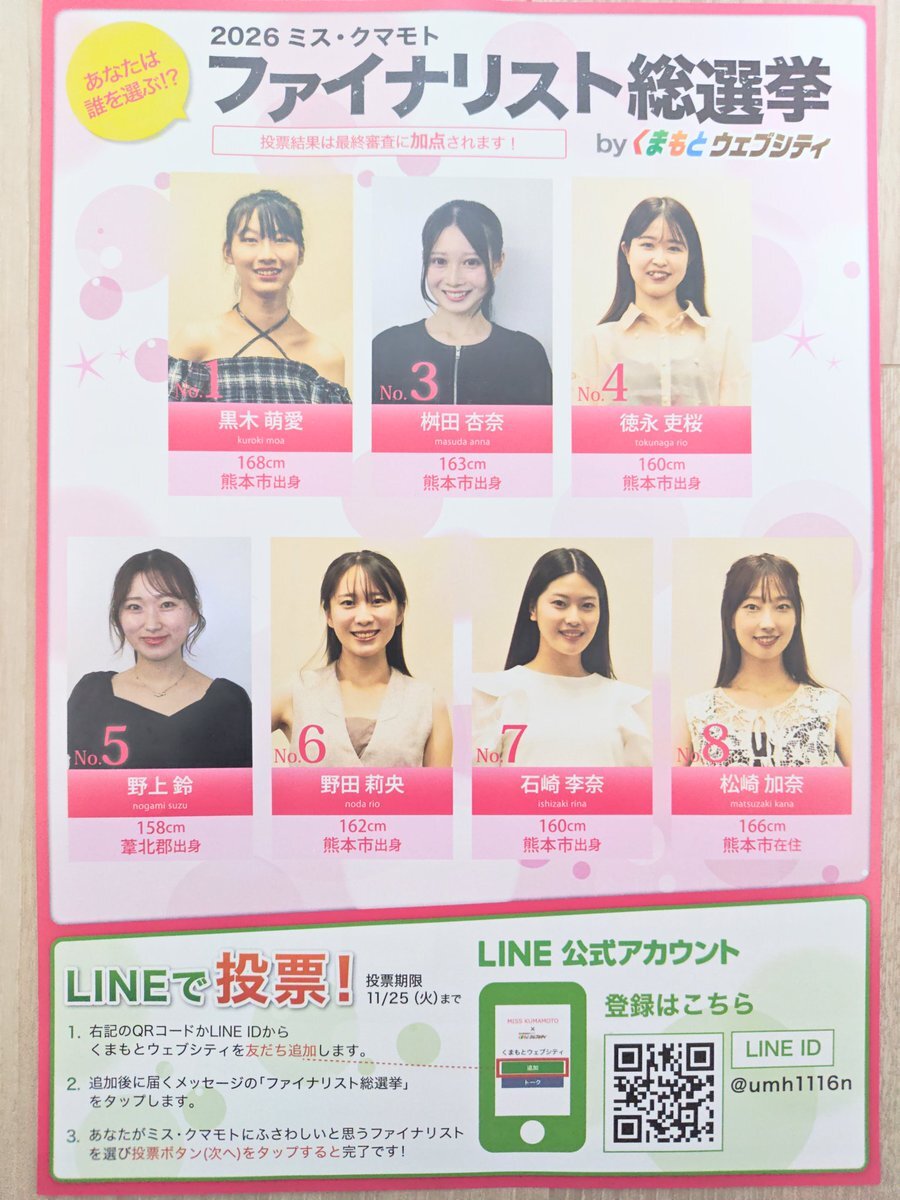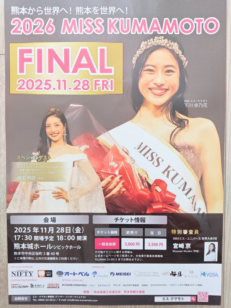 【イベントのお知らせ】 11月15日(土)#サクラマチクマモト の1Fメインコートにて「ミス・クマモト #公開レッスン 」を行います! 13時~、14時~に登場します。 今年版の #バックボード が目印です! 皆様とお会いできることを楽しみにお待ちしております! #ミスクマモト #ファイナリスト #熊本 pic.x.com/Lhs0pNG3sI