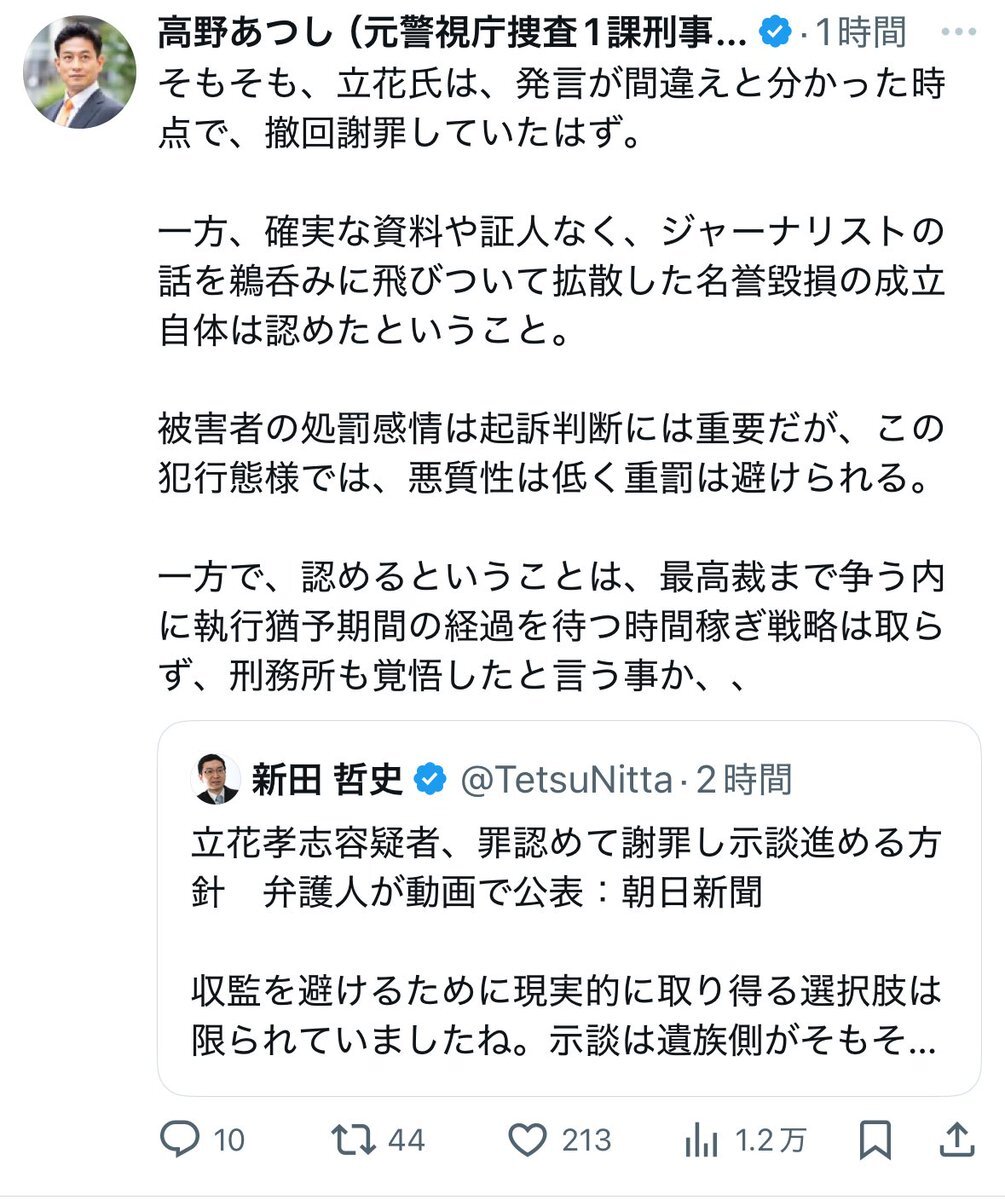 【立花容疑者 罪認め謝罪は戦略か】 news.yahoo.co.jp/pickup/6559365