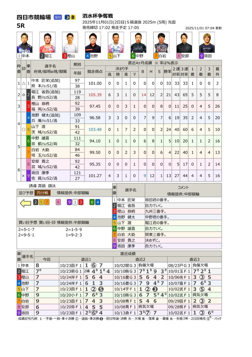 やってみようよケイリン❗️ #サテライト信州ちくま 11/1(土) #四日市競輪場 G3 泗水杯争奪戦 長野県出身 #堀江省吾 選手 出場します S級選抜 5R 2⃣番車 🔔発走予定 17:05 ライン2-5-7 📢サテライト信州ちくまにて、   皆様の熱い応援を心よりお待ちしております🍏 pic.x.com/AM1W2BNqAk