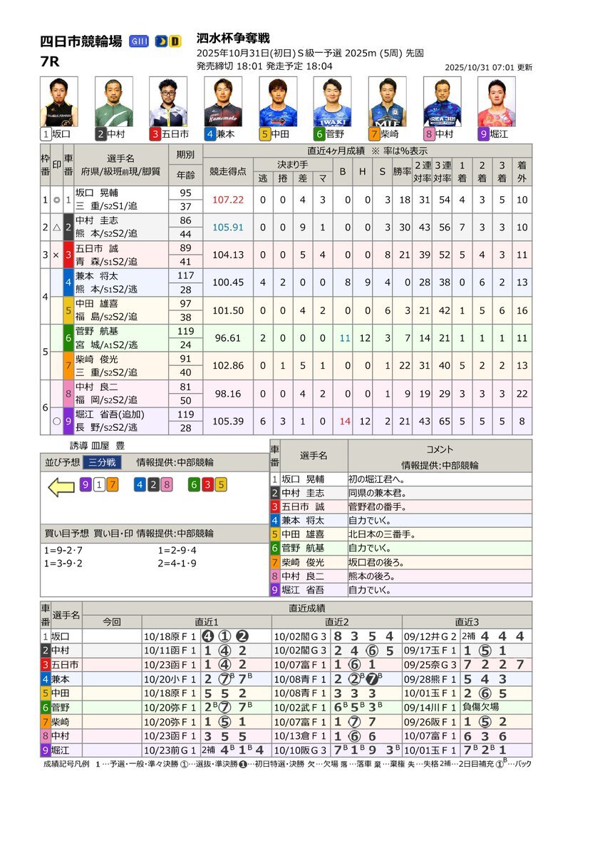 やってみようよケイリン❗️ #サテライト信州ちくま 10/31(金) #四日市競輪場 G3 泗水杯争奪戦 長野県出身 #堀江省吾 選手 出場します S級一予選 7R 9⃣番車 🔔発走予定 18:04 ライン9-1-7 📢サテライト信州ちくまにて、   皆様の熱い応援を心よりお待ちしております🍏 pic.x.com/12vcracu9Q