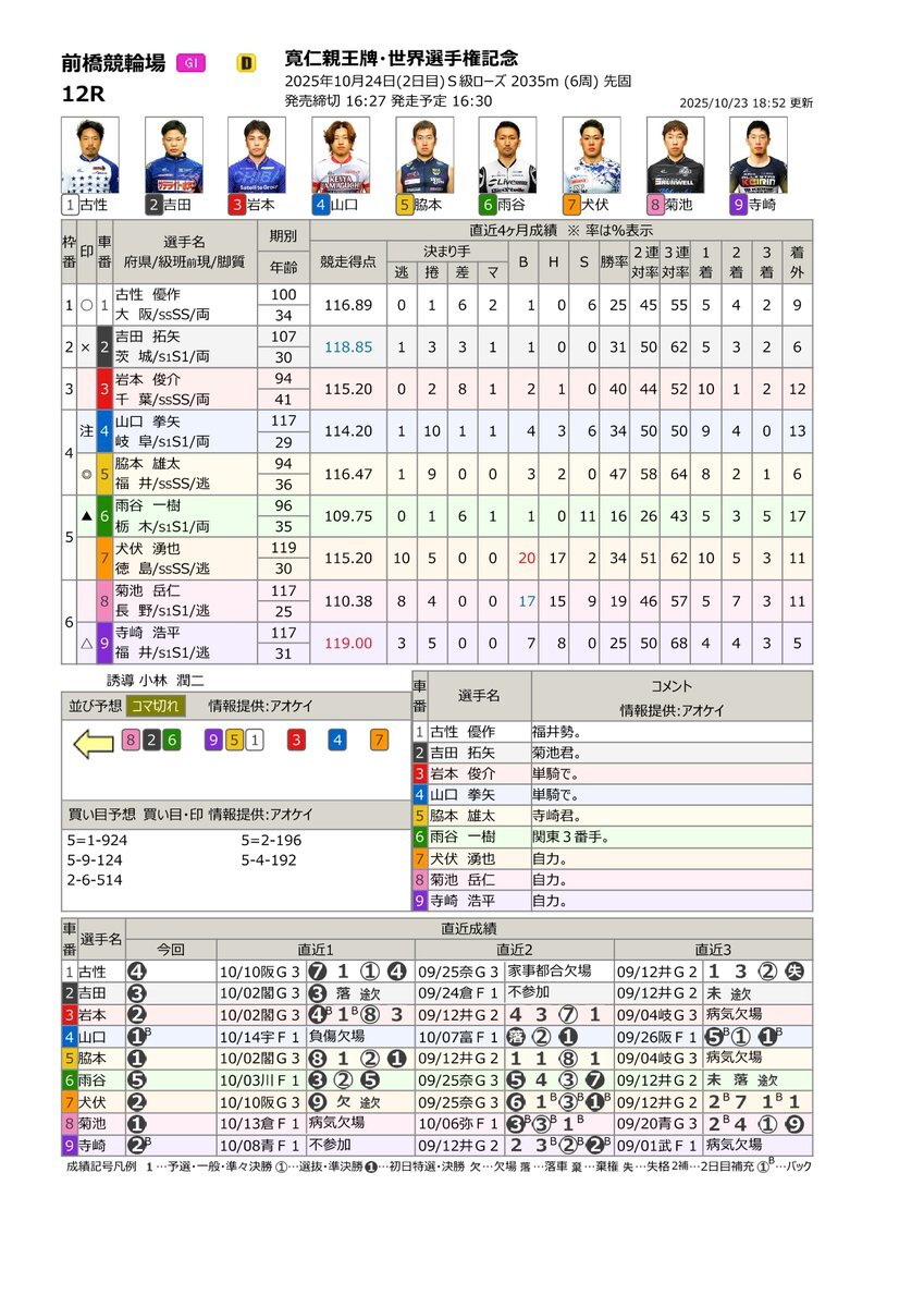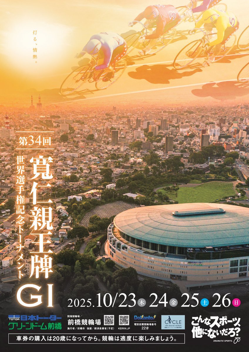 やってみようよケイリン❗️ #サテライト信州ちくま 10/24(金) #前橋競輪場 G1 寛仁親王牌・世界選手権記念 長野県出身 #菊池岳仁 選手 出場します。 S級ローズ 12R 8⃣番車 🔔発走予定 16:30 ライン8-2-6 📢サテライト信州ちくまにて、   皆様の熱い応援を心よりお待ちしております🍏 pic.x.com/qYpqHz1DH6