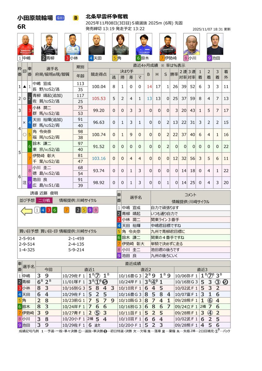やってみようよケイリン❗️ #サテライト信州ちくま 11/7(金) #小田原競輪場 G3 北条早雲杯争奪戦 長野県出身 #中嶋宣成 選手 出場します S級二予選 12R 6⃣番車 🔔発走予定 16:20 ライン6-3-8 📢サテライト信州ちくまにて、   皆様の熱い応援を心よりお待ちしております🍏 pic.x.com/mjrJvYZDER
