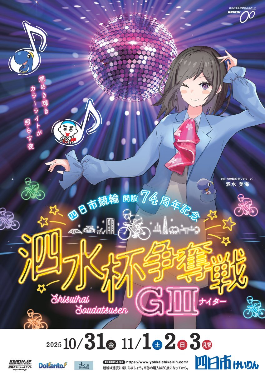 やってみようよケイリン❗️ #サテライト信州ちくま 11/1(土) #開催日程 F1→平塚競輪-初日 F1→高知競輪-最終日 F2→💓岸和田競輪-初日 G3→★四日市競輪-2日目 #泗水杯争奪戦 2次予選‼️ ★=ナイター競輪 💓=ガールズ競輪 ご来場お待ちしております😊 pic.x.com/zjcHcZ9tph