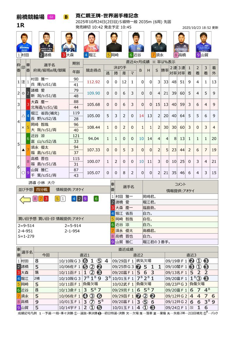 やってみようよケイリン❗️ #サテライト信州ちくま 10/24(金) #前橋競輪場 G1 寛仁親王牌・世界選手権記念 長野県出身 #堀江省吾 選手 出場します S級特一般 1R 4⃣番車 🔔発走予定 10:45 ライン4-2-9 📢サテライト信州ちくまにて、   皆様の熱い応援を心よりお待ちしております🍏 pic.x.com/slotWdM3WO