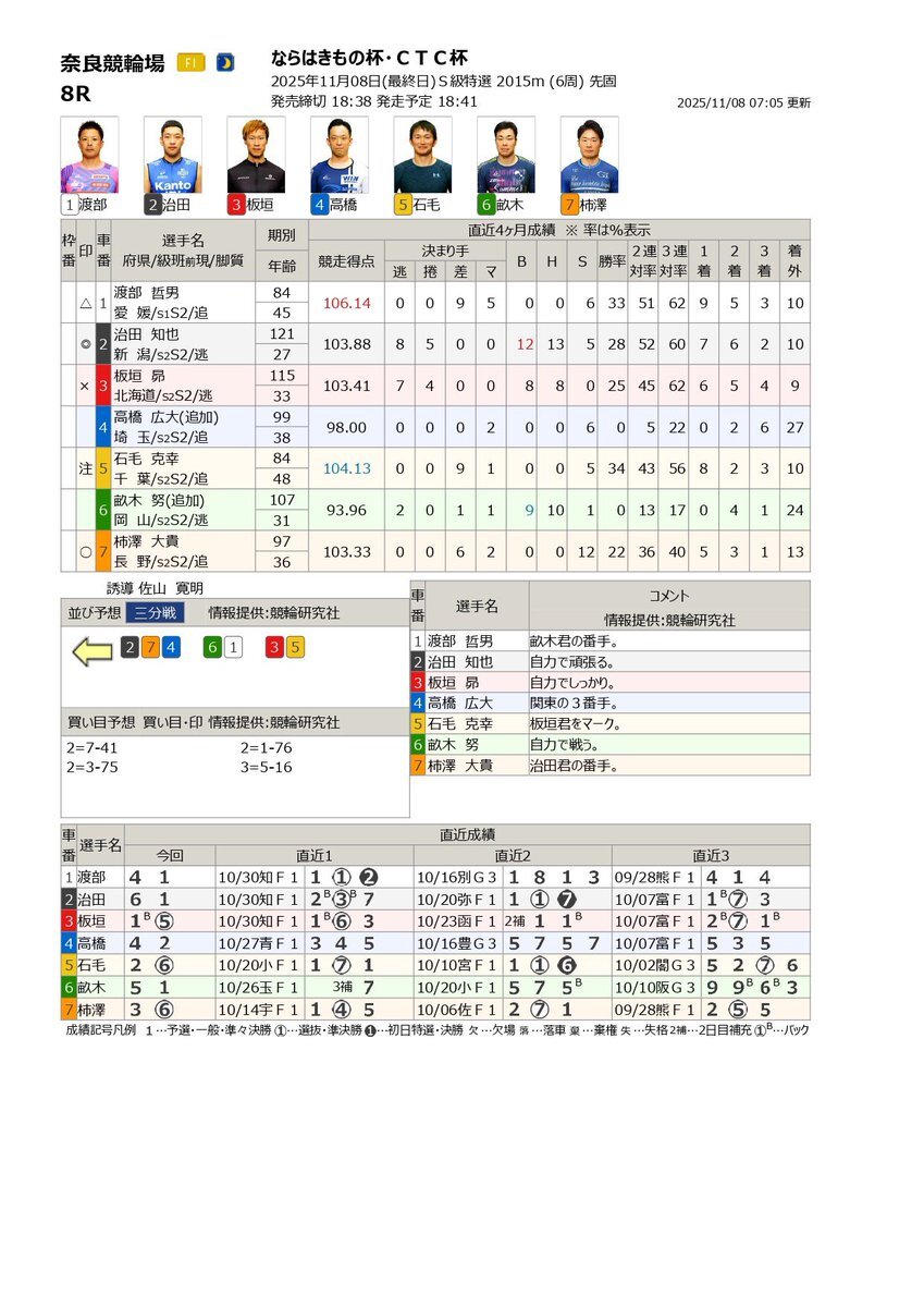 やってみようよケイリン❗️ #サテライト信州ちくま 11/8(土) #奈良競輪場 F1 ならはきもの杯・CTC杯 長野県出身 #柿澤大貴 選手 出場します。 S級特選 8R 7️⃣番車 🔔発走予定 18:41 ライン2-7-4 📢サテライト信州ちくまにて、   皆様の熱い応援を心よりお待ちしております🍏 pic.x.com/B1nlVrKMJk