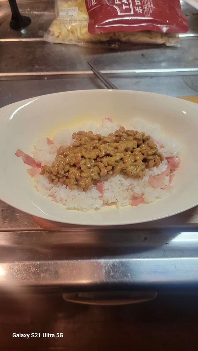 いただきます。🍴🙏 本日は昼御飯。 納豆ごはんにボロネーゼとチーズをのせてレンチンするだけ #昼御飯 #納豆ごはん #ボロネーゼ #サトウのごはん pic.x.com/SqZTbDBw9K