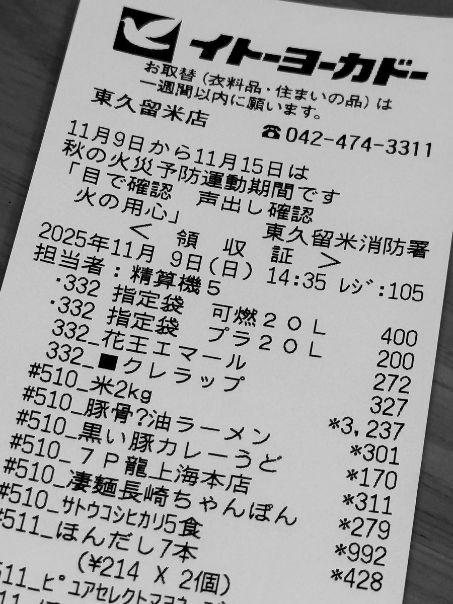 #2025年11月18日。 昨日は17時を4分フライングして、アトムの向かいで3時間でビール5本。 面白い客もいて、1-2本のはずが延長。 家に帰って、#サトウのごはん、特売の、#カレーヌードル。 21時に寝ると、電話と家のインターホン。 夜間に遊ぶ友達はいないので、今朝の早起きのために放置。