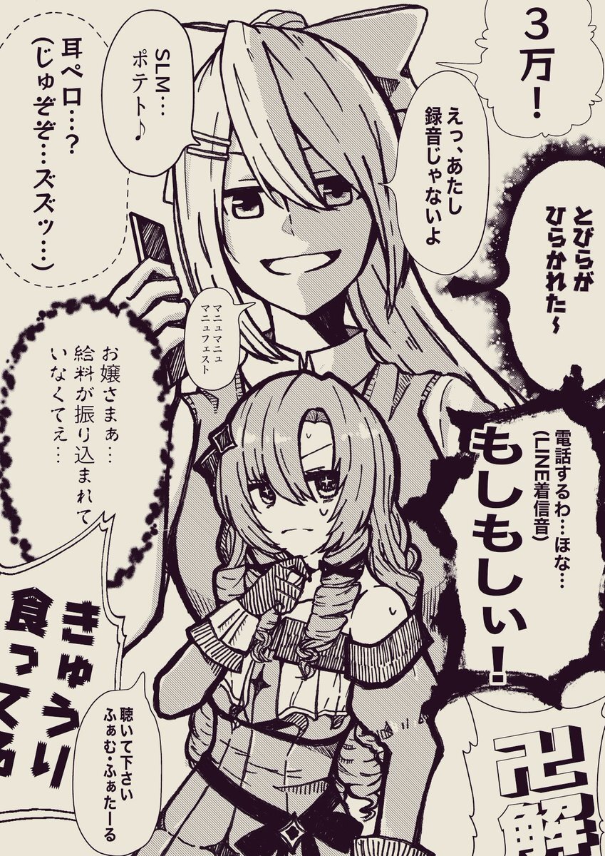#サロメ百万展 ひぐらしメンバーとですわドラゴン🐉💯ちゃんリクエストで 個人的に好きな2人のほのぼのを描かせていただきました お菓子とかあげて笑いあってて欲しい… 大変お待たせいたしました……! リクエストありがとうございました……!!!🙇♀️ pic.x.com/sZr6EfjTgZ