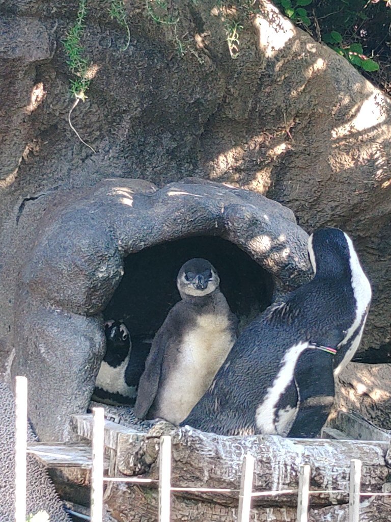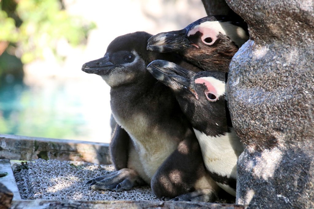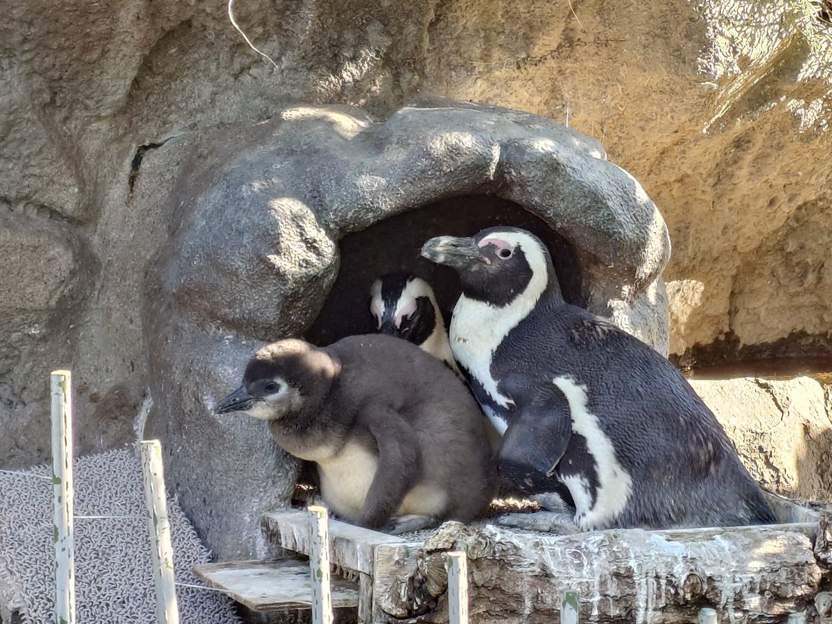 換羽チーム🐧2025秋 ①冬ファッション先取りのテントくん ②頭がぱやぱやしててお客さんから「ヒナがいるよ」って言われてたしろみどちゃん ③全体的にもけってたあおむらさん #サンシャイン水族館 #ケープペンギン pic.x.com/8pr3vwOMy0