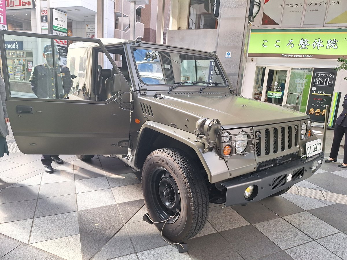 #軽装甲機動車 は車の上のハッチから体を出して、機関銃やロケット弾の射撃ができる車で、Light Armoured Vehicle の頭文字から #LAV と呼んでるそうです #自衛隊制服コレクション #一番町アーケード街 #サンモール一番町商店街 pic.x.com/wiAqe2wk0Y