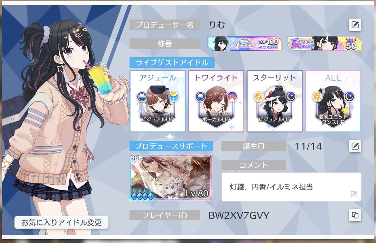 鈴木羽那ちゃんの誕生日に合わせて更新します。 現在、シャニソンのフレンド募集中です。 My ID→ VFSNGFBF5 ♡ or RTで気になった方お迎えに参ります! #鈴木羽那生誕祭2025 #鈴木羽那誕生祭2025 #シャニマスPと繋がりたい #シャニマスPさんと繋がりたい pic.x.com/Zs9s873WZ8