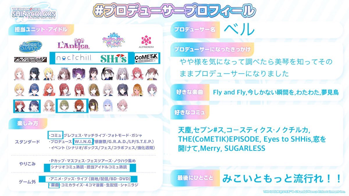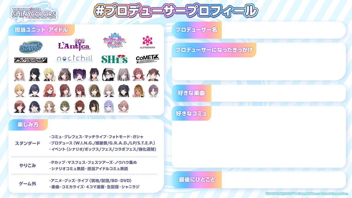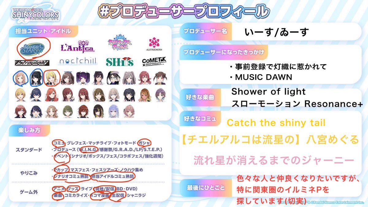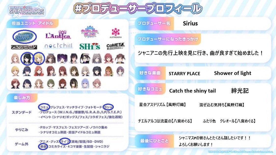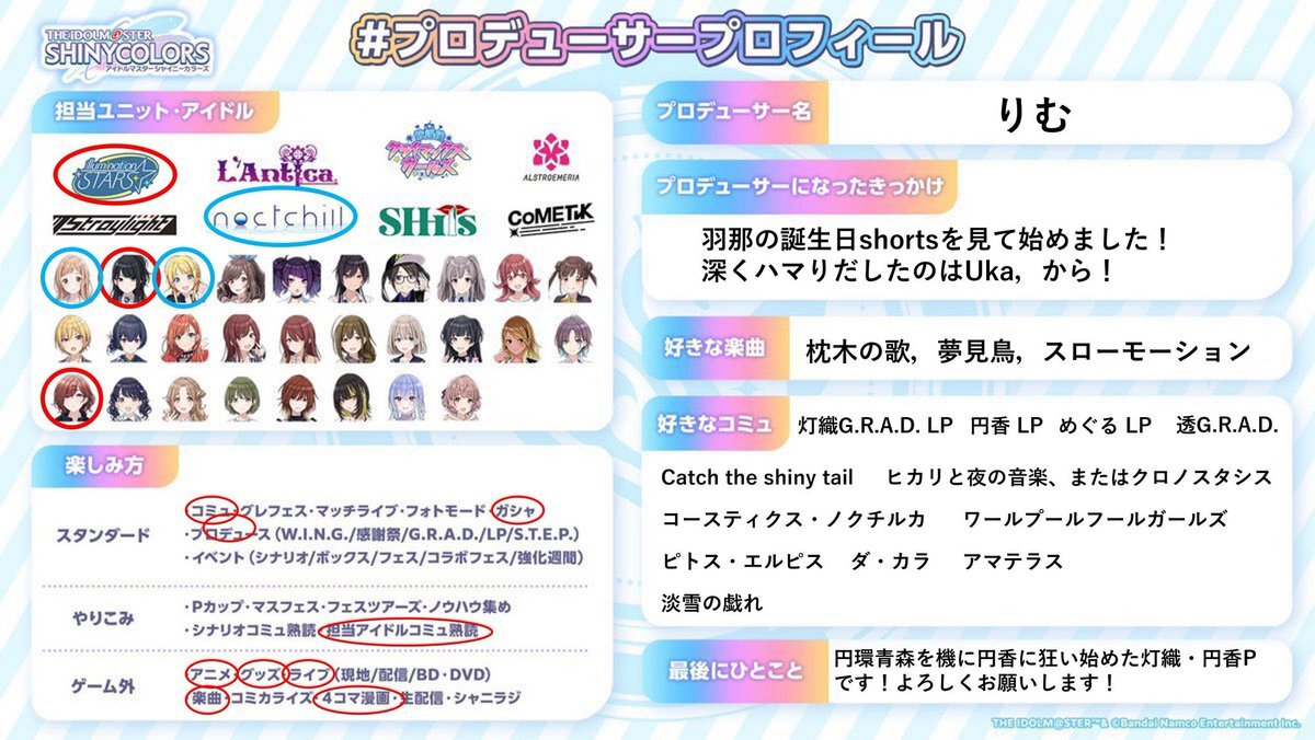 🔗先によろしければ反応・拡散お願いします💠 #シャニマスPさんと繋がりたい #シャニマスPと繋がりたい #プロデューサープロフィール x.com/50d0d0_/status…