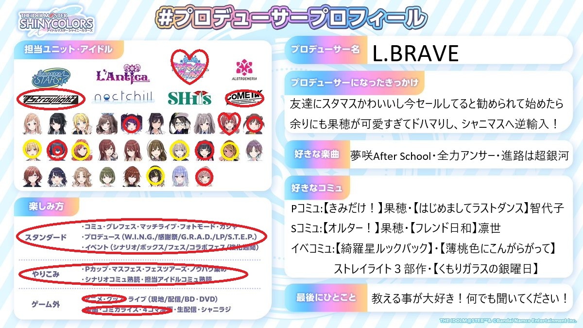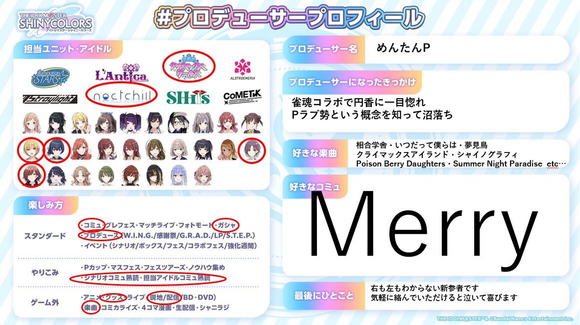 円環青森に灼かれ、螺旋も近づいてきたのでプロデューサープロフィールを作ってみました! ノクチル箱推し兼小糸Pです! 気軽に絡んでください〜! よろしくお願いします! #シャニマスPさんと繋がりたい #シャニマスPと繋がりたい #プロデューサープロフィール pic.x.com/CwLkTco1gQ