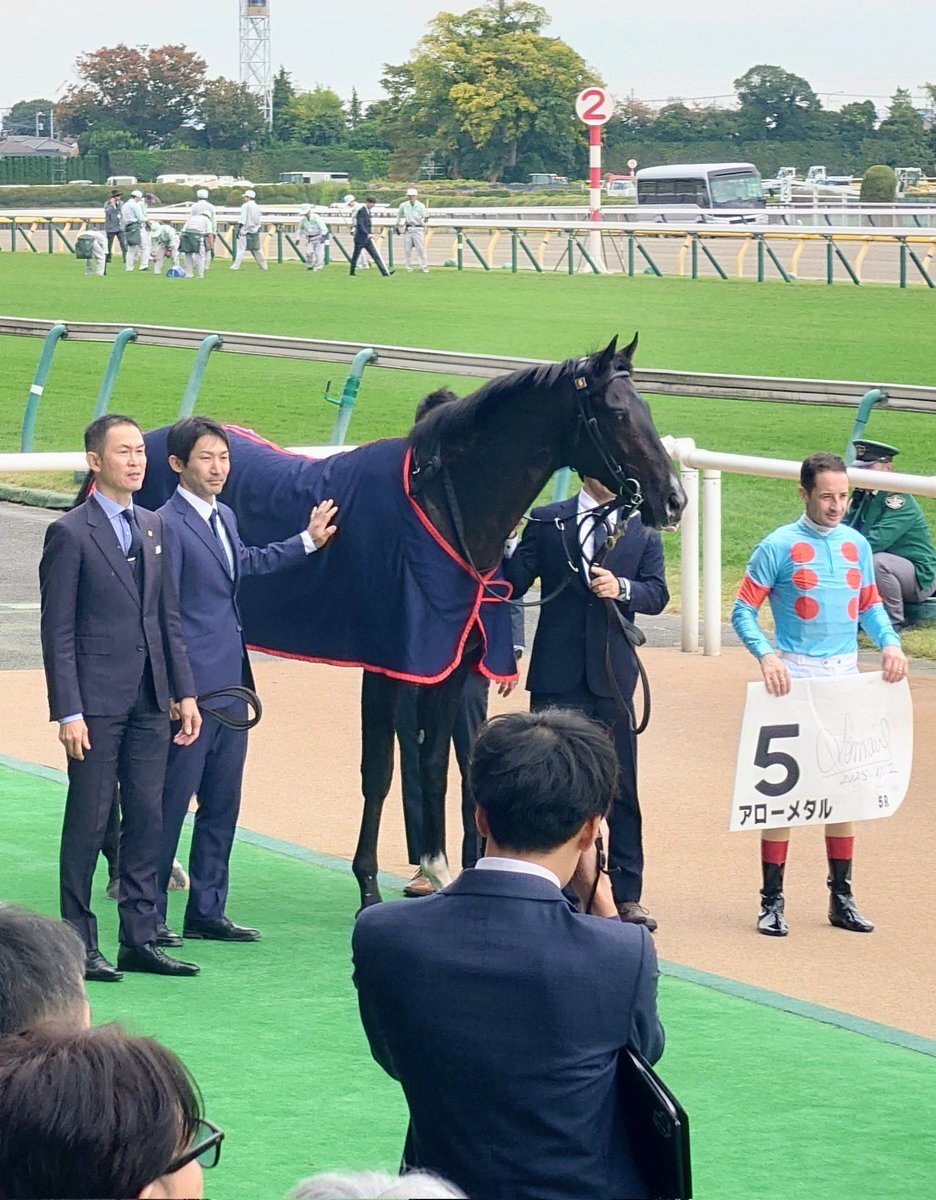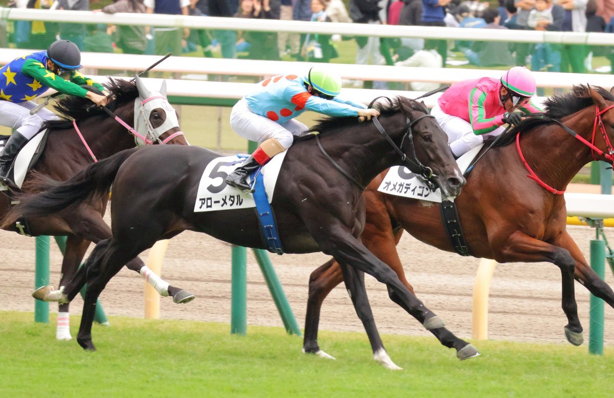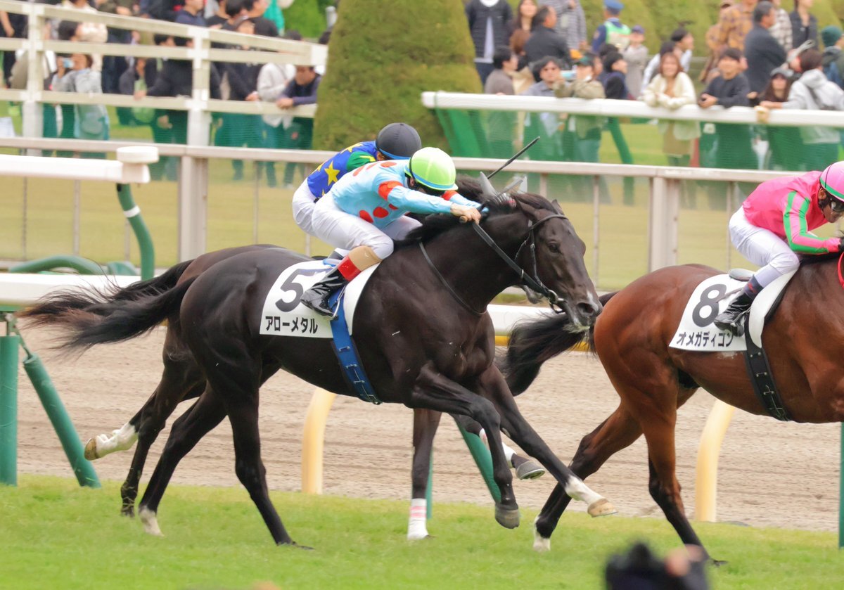東京5Rは断然の1番人気に推されたアローメタルが、直線でしばらく他馬に囲まれていましたが、前が開くと一気に伸びて差し切り勝ち。半兄タイセイドラードと同様に新馬勝ちとなりました。ルメール騎手はこれで3、4、5Rと3連勝! #木村哲也 厩舎 #キズナ 産駒 #シルクレーシング pic.x.com/KaATqwizZB