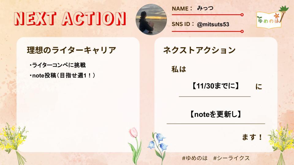 初めてシーライクスのライター関係のイベントに参加できた!ようやくライターの方たちとつながれる1歩を進めたような気がして嬉しかった!コンペとnote頑張る! #シーライクス #ゆめのは #シーメイトさんと繋がりたい pic.x.com/qyXBtUbGPM