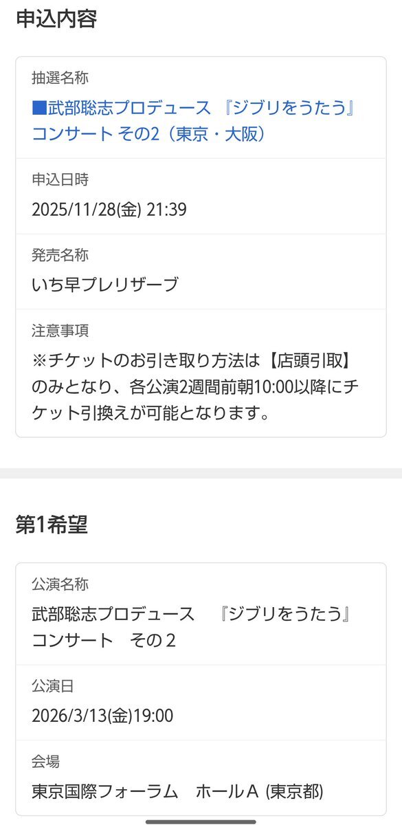 申し込んだよー‼️ 3/13東京公演 SS席一択❗️ 当たりますように🙏 #ジブリをうたうその2 #ジブリをうたうコンサート #武部聡志 #Kalafina #Wakana #KEIKO #Hikaru pic.x.com/X6w7QGada5