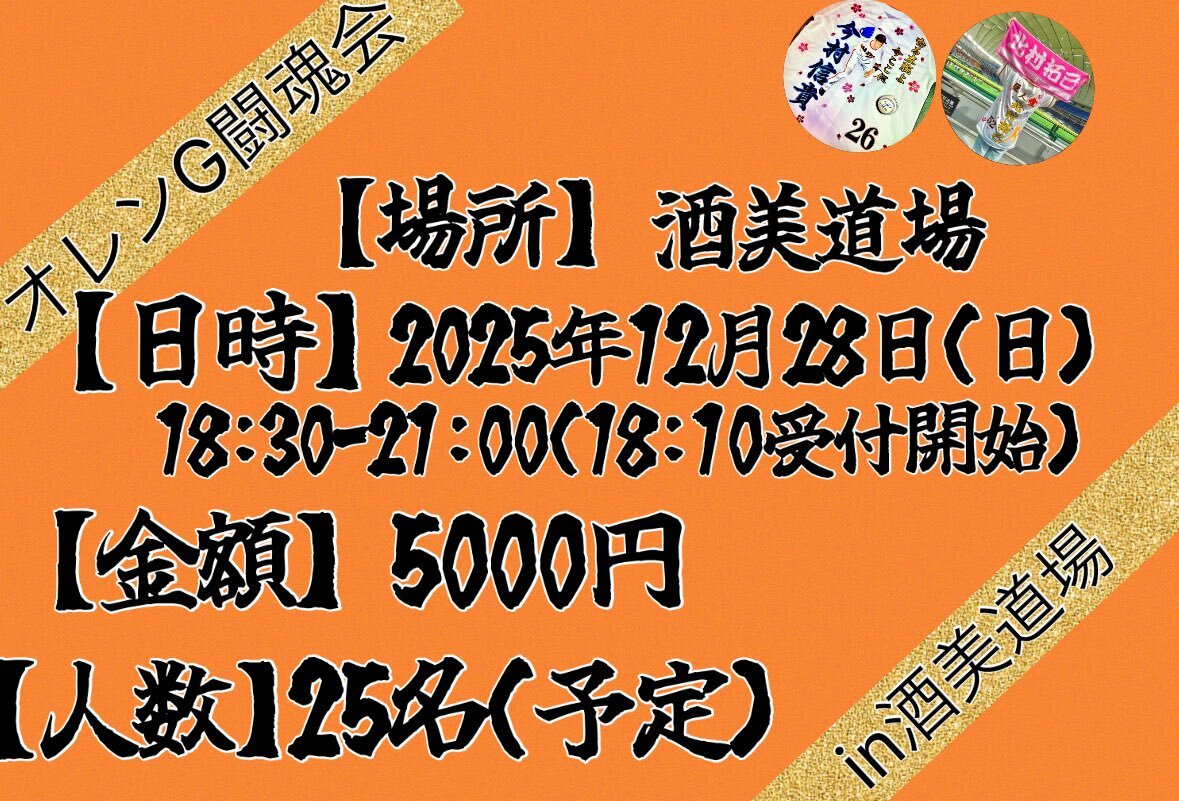 🔸第15回🔸 🔥オレンG闘魂会🔥 Xmas & 大忘年会✨ 年内最後のイベントはオレンG闘魂会で! 詳細は動画をご確認下さい💪 ⚾️奮っての参加お待ちしてます⚾️ 🔸参加希望の方はDMへ🔸 #オレンG闘魂会 #拡散希望RTお願いします #ジャイアンツファンと繋がりたい #巨人ファンと繋がりたい pic.x.com/ZOdHGwlvD2