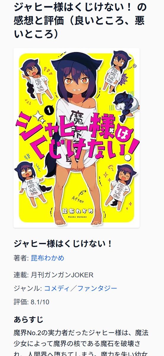 ジャヒー様はくじけない! 魔界No.2の残念美少女が人間界でバイトし魔界復興を目指すが… 詳細なあらすじや評価、点数をチェック✨ #ジャヒー様はくじけない #月刊ガンガンJOKER #10巻以上の漫画 mangayoshiashi.com/manga/c5efcabc… pic.x.com/SqQJ2kETqo