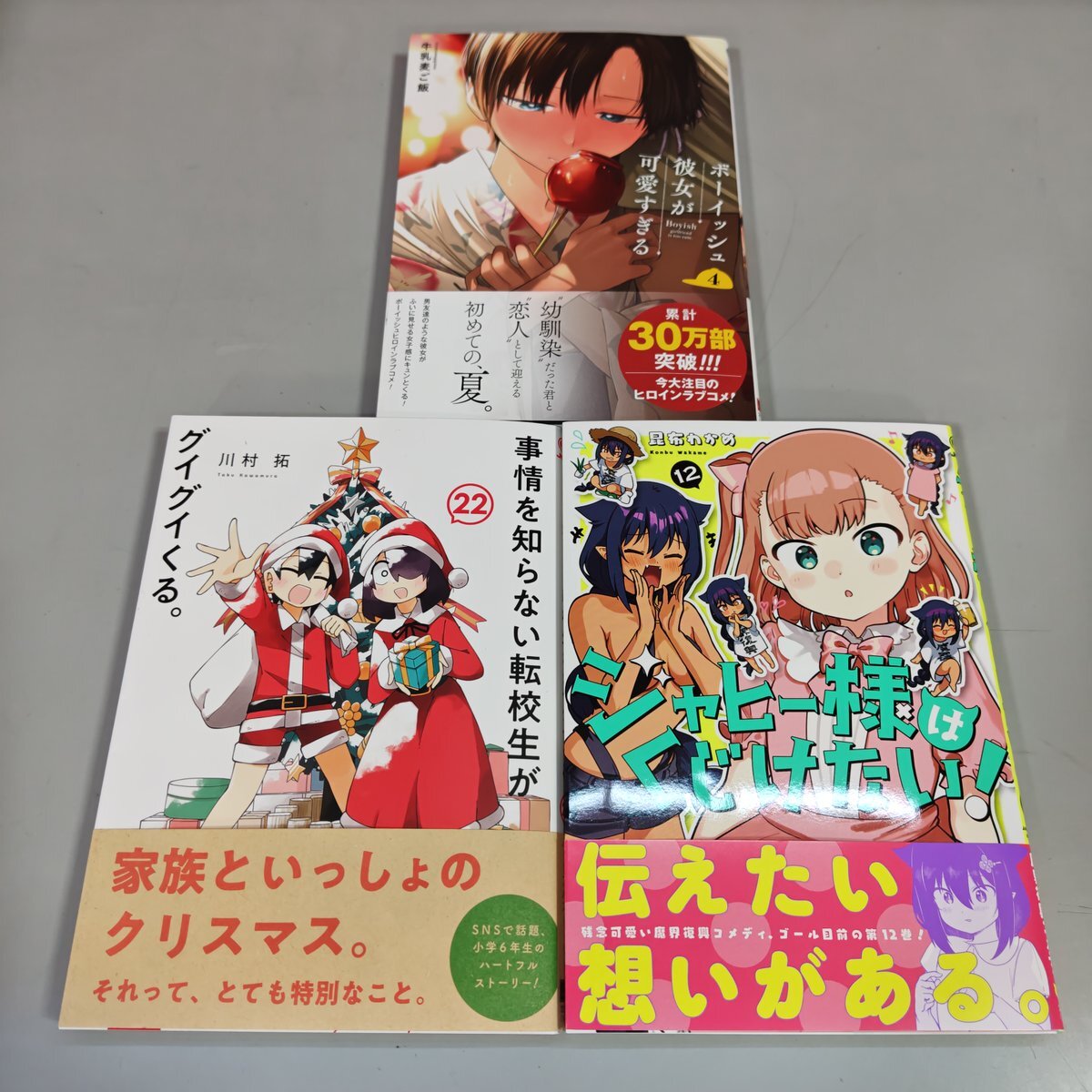 😀11月20日 新刊入荷情報④📖 #牛乳麦ご飯 #ボーイッシュ彼女が可愛すぎる(4) #川村拓 #事情を知らない転校生がグイグイくる。(22) #昆布わかめ #ジャヒー様はくじけない!(12) pic.x.com/K8mHF6lvnp
