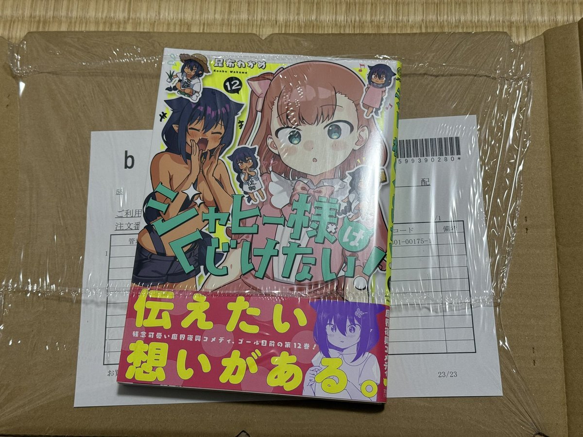 たぶん注文してた漫画だろうと思うけど、開封厳禁って書いてある え?やっと届いたのに開けられないん?困ったなぁコレ! うん、まあ結果開けたんだけどね😑 #ジャヒー様はくじけない!12巻 pic.x.com/SJ22hylaEH