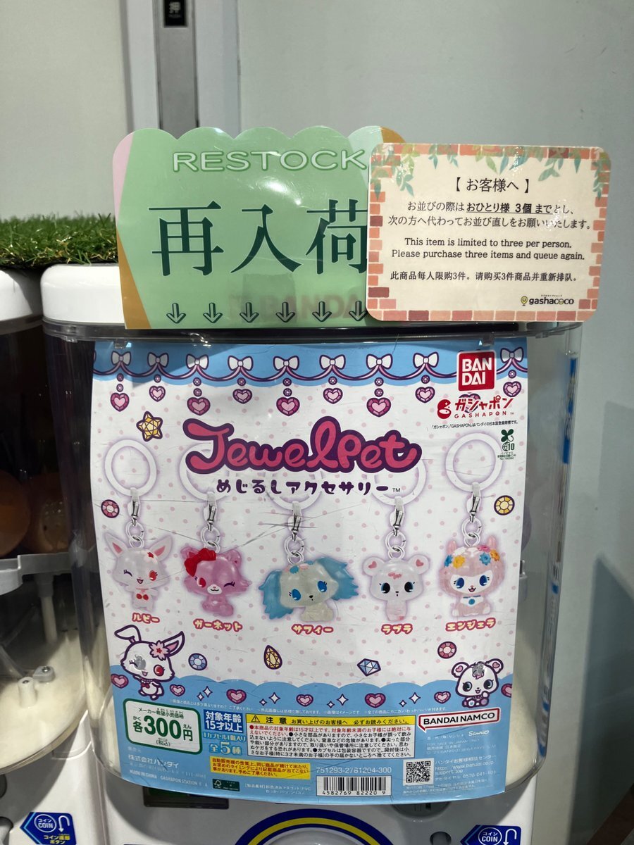 話題のガチャが入荷しました! #ジュエルペットめじるしアクセサリー ご来店を心よりお待ちしております✨ 人気ガチャのため後ろにお待ちのお客様がいる場合、5回交代でお願いいたします! #カプセルラボ #ガチャガチャ #ララテラス北綾瀬 #ジュエルペット #めじるしアクセサリー pic.x.com/3WJXplfWZB