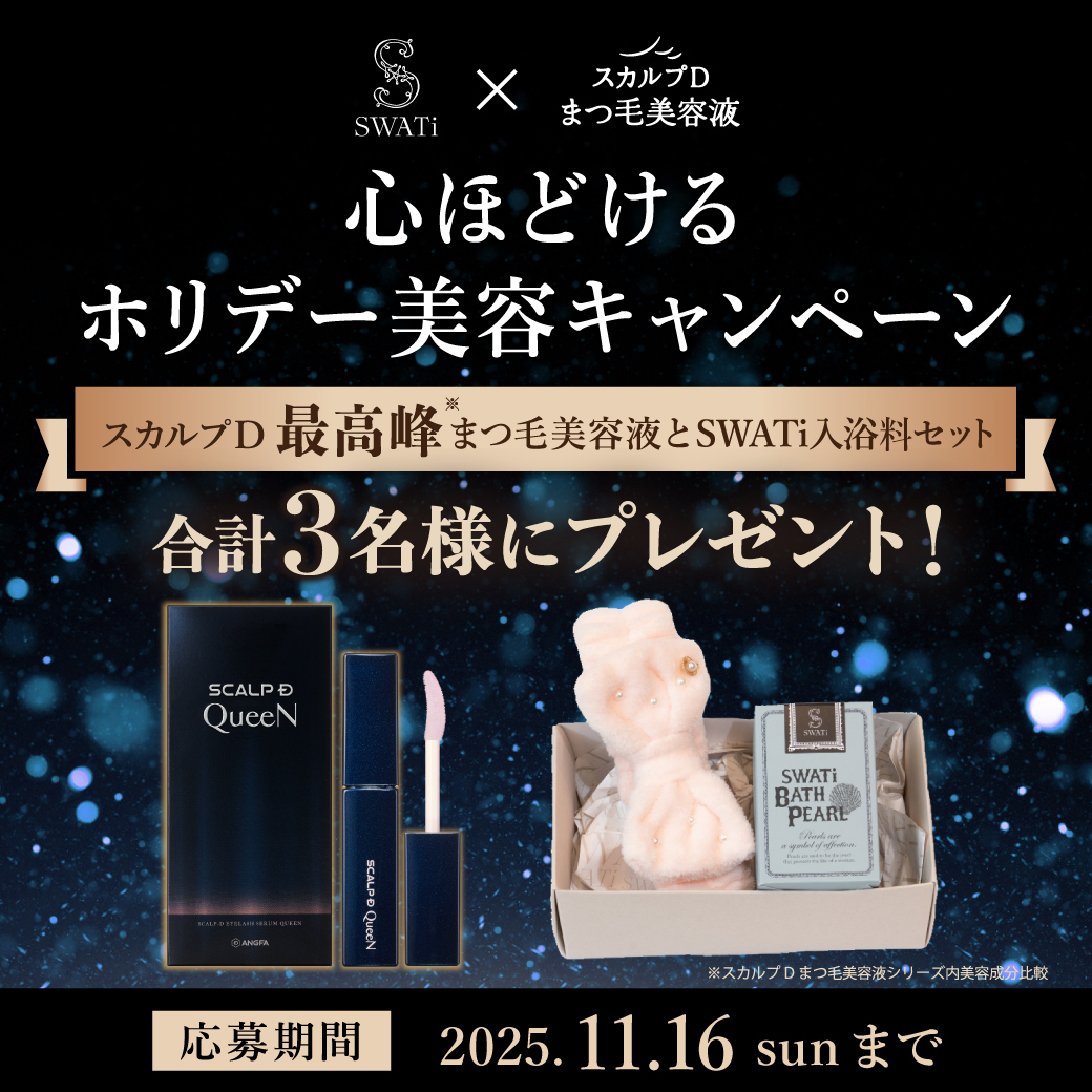/ SWATi ×スカルプDまつ毛美容液🎉 抽選で3名様に冬のリラックス時間に ぴったりな豪華商品プレゼント🎁 \ 香りに癒され、ぬくもりに包まれて、 心もまつ毛もしなやかに満たされる夜。 今日も頑張った私へ、極上の癒しをプレゼント🌙 ✅応募方法