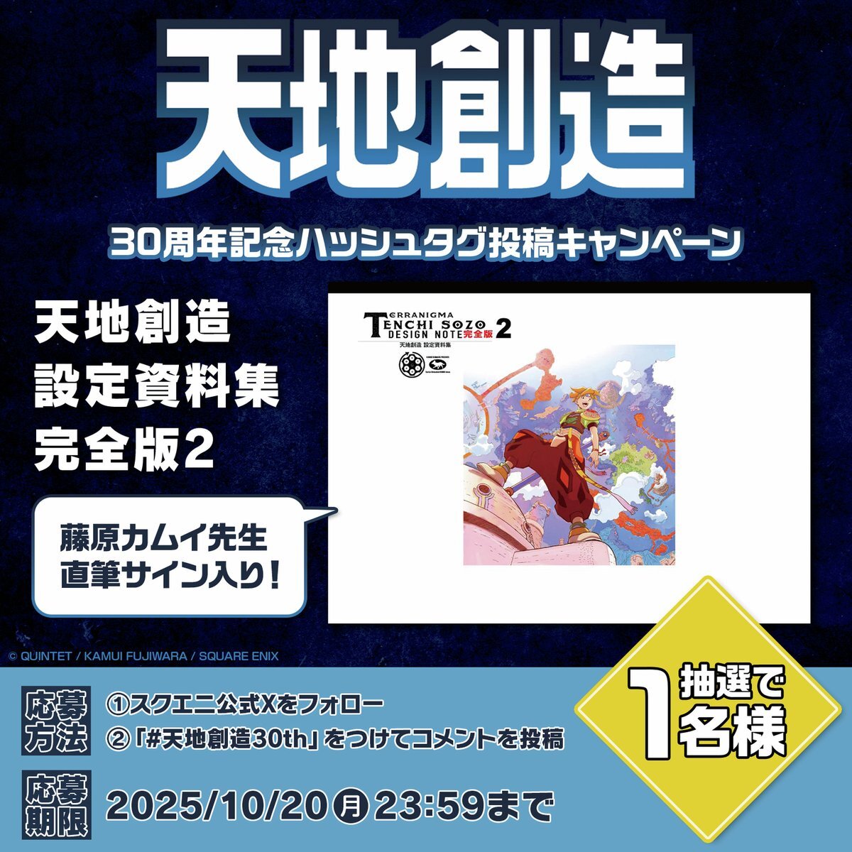 🪐—・—・—・—・—・—🪐 天地創造30周年記念🎊 ハッシュタグ投稿キャンペーン🌍 🪐—・—・—・—・—・—🪐 【応募方法】 1⃣@squareenix_jp をフォロー 2⃣ #天地創造30th をつけて本作についてコメント投稿 【期限】 2025/10/20(月)23:59まで 注意事項など詳細は添付の画像をご確認ください📝