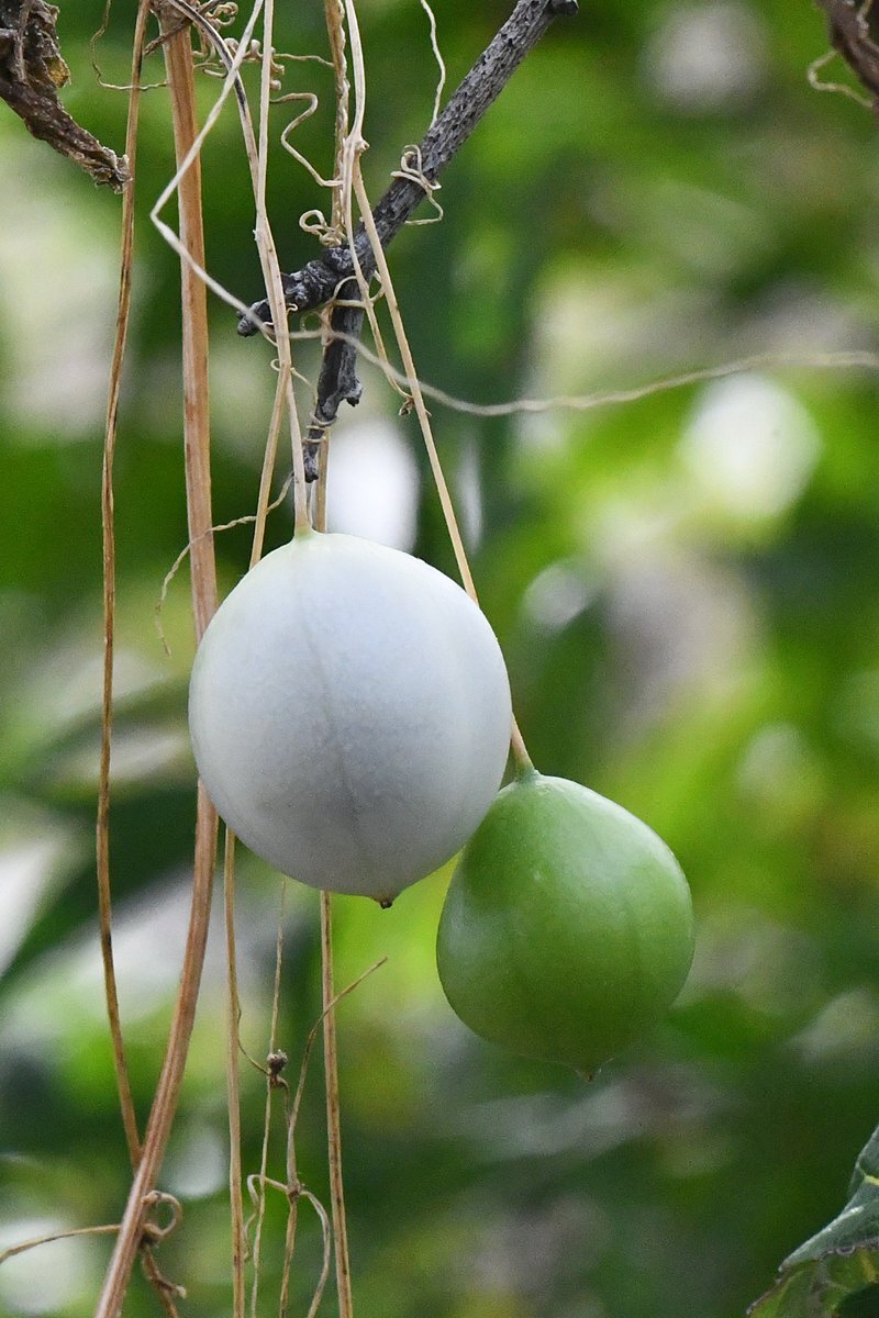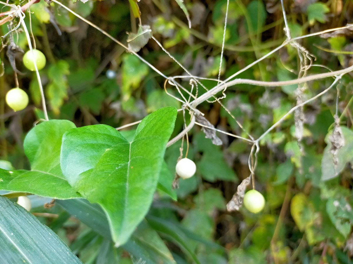 自称陸上のパールこと #スズメウリ の白く熟した果実が見頃です。熟す前は緑色です。 つる性の1年草で園内各所、様々な植物やロープ等に絡んでいますので是非探してみてください。 カラスウリと異なり花も小さく、実も小さい、雌雄同株の雌雄異花です。 #植物多様性センター pic.x.com/pWDz6Zsgnh