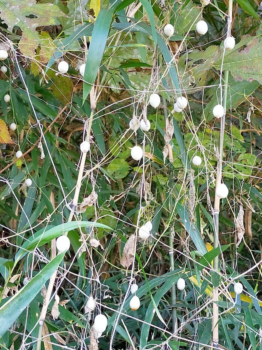 「この白い果実はなんですか?」 最近よくあるお問合せです。 これは #スズメウリ の果実が熟した状態です🍈 真珠のよう!は言い過ぎかもしれませんが緑の中にこの純白な果実があるとひと際美しく見えます。 比較的どこでも見ることが出来ます。 花は下記の引用をご参照ください。 #植物多様性センター pic.x.com/Ob70vdXRC4 x.com/ParksTayousei/…