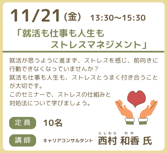 直近の少人数セミナーのご案内。 ■申込方法:ご来所・お電話(0888021533)・公式サイト のフォーム #ジョブカフェこうち #少人数セミナー #ストレスマネジメント #就活 #就職相談 pic.x.com/Bw9HnwtrXK