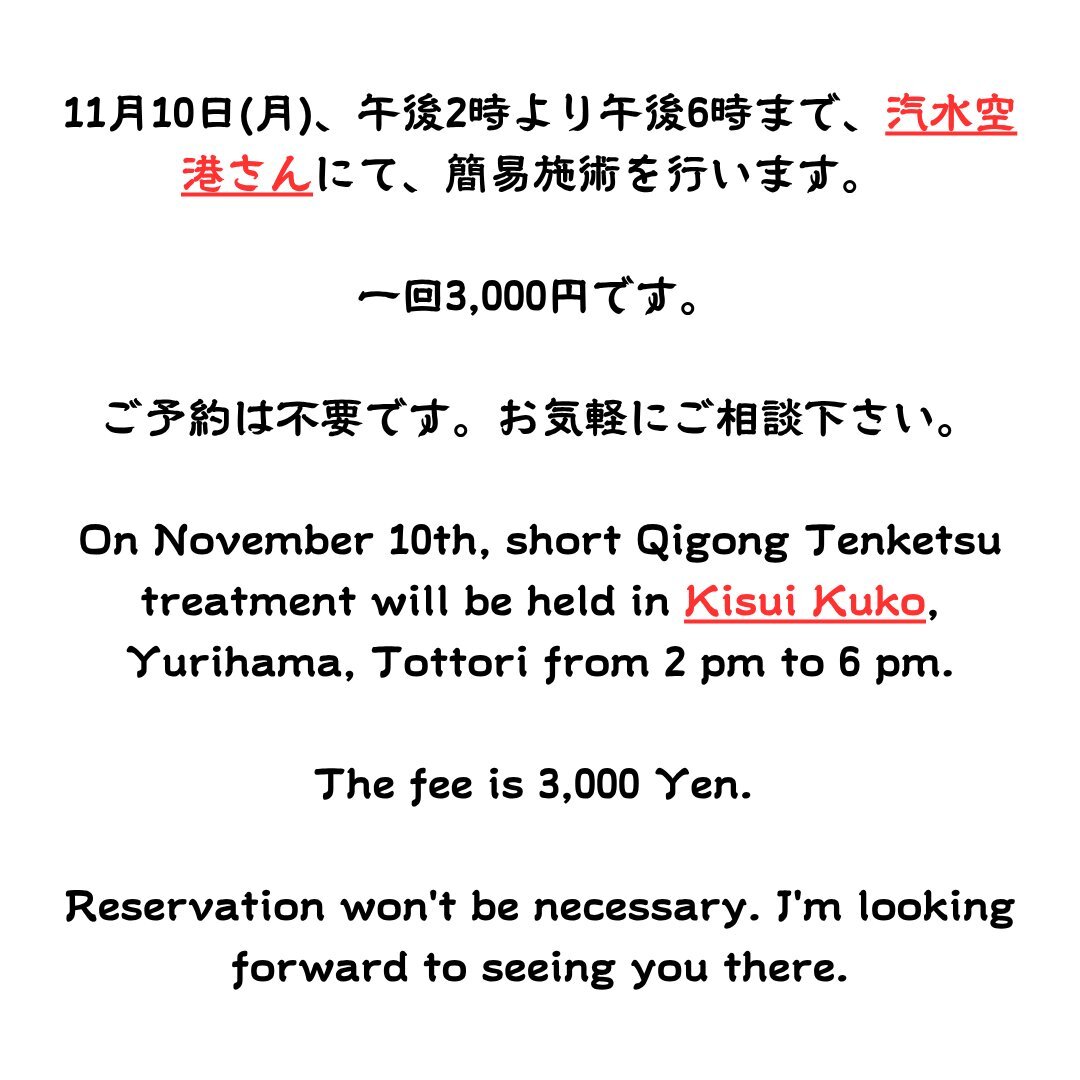 11月10日(月)、午後2時より午後6時まで、汽水空港さんにて、簡易点穴施術を行います。 一回3,000円です。 ご予約は不要です。お気軽にご相談下さい。 #気功 #点穴 #メンタルヘルス #代替医療 #ストレス管理 #自己ケア #mysticism #supernatural #paranormal #taoism #easternmedicine #qigong #yoga pic.x.com/jHVPWzQlPE
