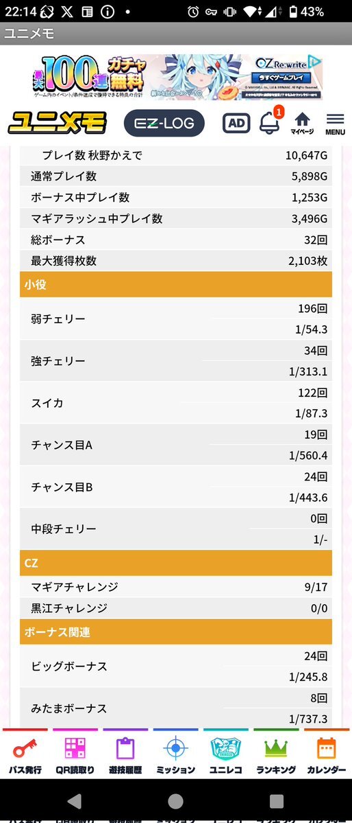 #スマスロマギアレコード 設定推測2! 投資67000円から 何もかもやれなかったけど、この履歴で約7300枚出た… 黒江チャレンジからのドッペルエピソードで一撃エンディング 有利切れまで200枚ほど足りず… 我ながらこれでよく出したよ😅 pic.x.com/RJHMLsDeOY