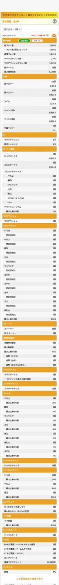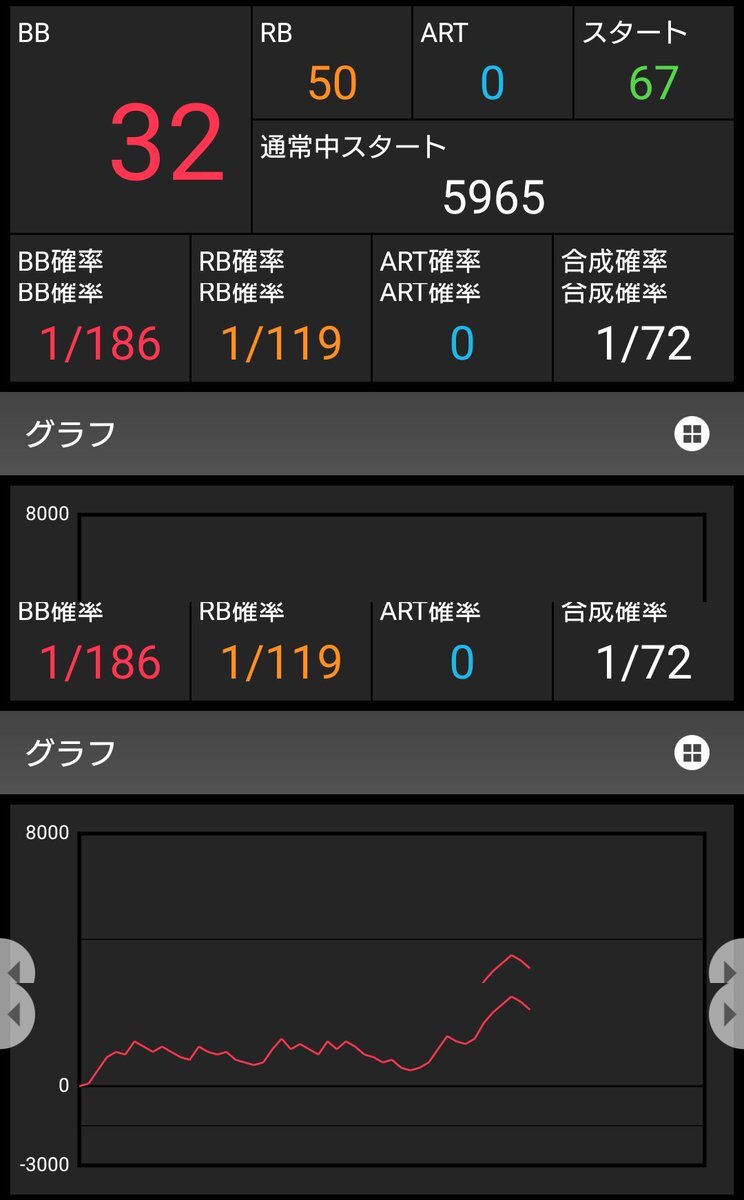 昨日の結果。 前日に自分が散々苦労させられた台の方で別の人が万枚出してるのを横目に、自分は10時間近くず〜っとダラダラした展開を続けてました…😰 まあ少し前に⑥で負けた事もあるので勝てただけ全然マシではありますが。 #スマスロマギアレコード pic.x.com/Ac3ZSqJNs2