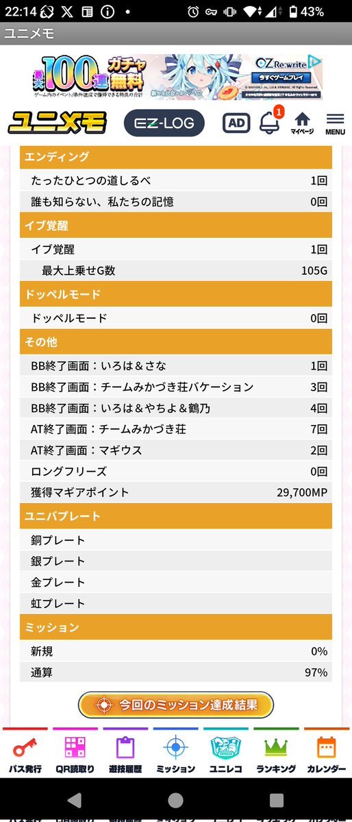 #スマスロマギアレコード なんとか取り返した。 +3K (ΦωΦ)あぶねー、時間も結果もギリギリ💦 閉店時間前に黒江出るのは卑怯だよ あとはユニメモガチャで出ちゃった♥🍌💦 pic.x.com/xl3m9VmkvE x.com/jalan59404321/…