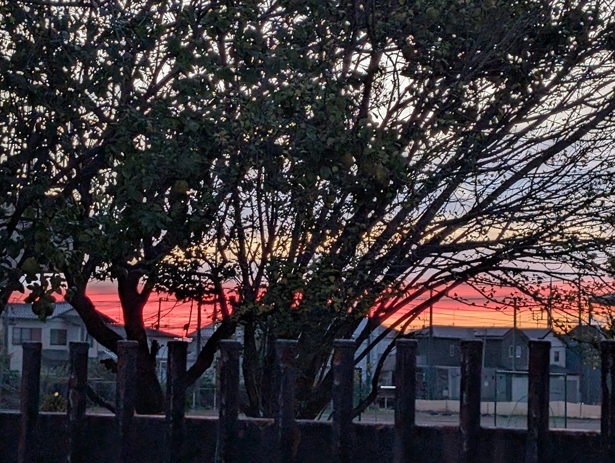 なお。夕方。母校の向こうが焼けてました。 明らかにミルフィーユ。^^; 夕方晴れないなぁ… #キリトリセカイ #写真で伝える私の世界 #空のある景色 #夕焼け