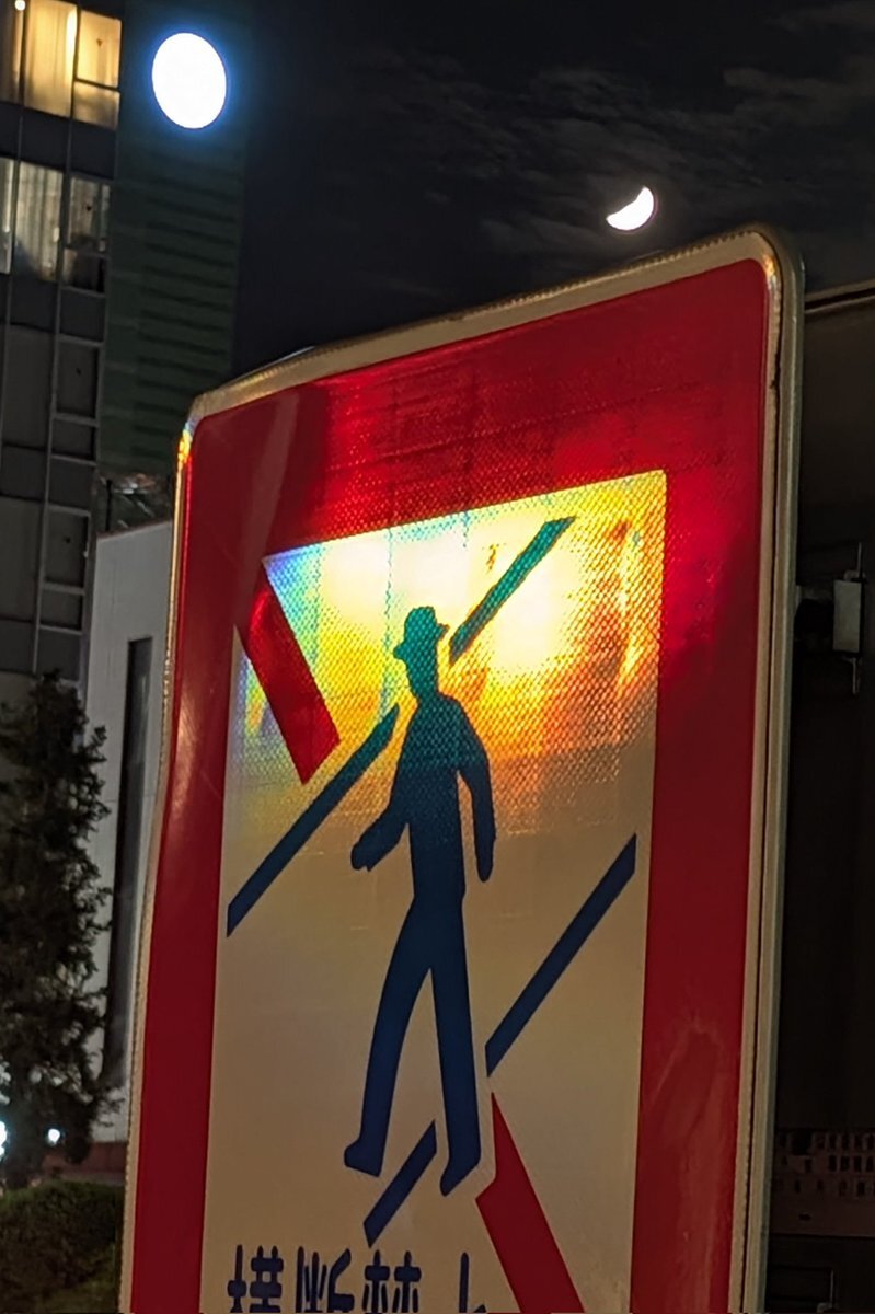 うーむ、うまく絞れない #スマホで月を撮ろう部 #スマホ写真部 #真猫星録 #Pixel8 # #moon #キリトリセカイ #写真で伝える私の世界 #空のある景色 駐輪場でてきたら居た。ソコに矢印あったことに初めて気づいたよ。 pic.x.com/EZNqhJq2qb