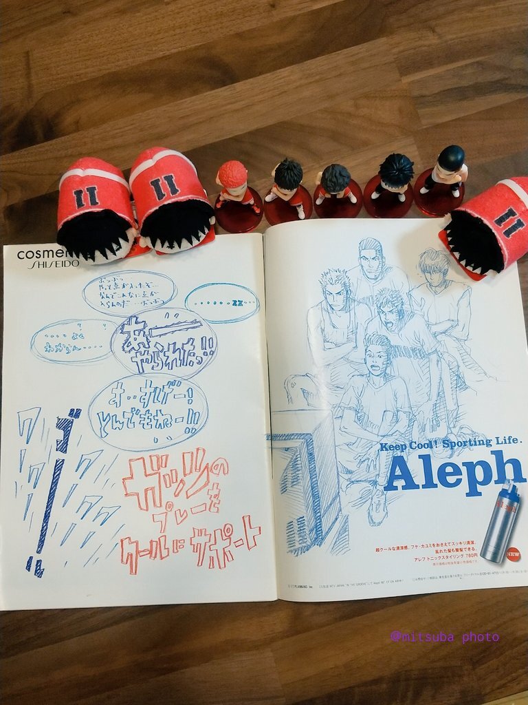 ずっと探してた資生堂Alephの広告🏀✨ 雑誌ごと現物にやっと出会えて感慨深いです🥺✨ バスケ以外の描写珍しいし、みんないい表情! 桜木くんも復帰してるみたいで嬉しい🥺 ワールドカップ見てるのかな⚽️ 流川くんは興味がなくて眠そうだけど、みんなと一緒にいて可愛い🥺💜 #スラムダンク #流川楓 pic.x.com/WRQpYUYLL5